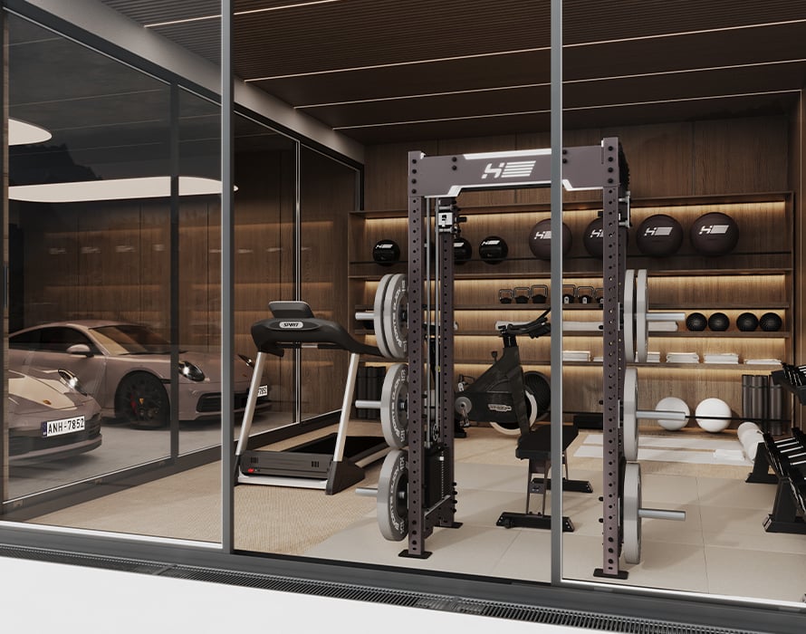 Wir bieten nicht nur hochwertige Trainingsgeräte, sondern entwickeln auch umfassende Konzepte für HomeGym-Bereiche. Wir kümmern uns um die Ausstattung, Lichtgestaltung und Spiegel, um einen perfekt abgestimmten Trainingsbereich zu schaffen, der selbst höchsten Ansprüchen gerecht wird.