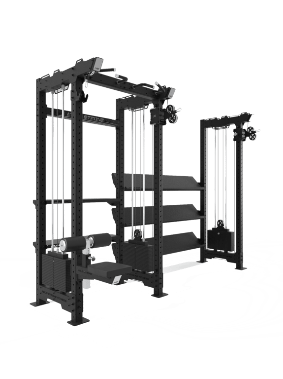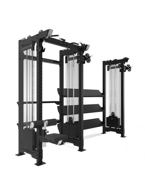 Das Athletic Performance Rack V von HOLD STRONG Fitness kombiniert ein hochwertiges Rack mit einer integrierten Latzug- und Cable-Crossover-Station, um ein vielseitiges und effektives Krafttraining zu ermöglichen. Entwickelt für Fitnessstudios, Physiotherapie-Einrichtungen, Hotel-Gyms und Firmenfitness, bietet diese 5in1 Trainingsstation eine komplette Trainingslösung auf kompakter Fläche. Durch die Verbindung von freien Langhantelübungen, Kabelzugtraining, Klimmzugvariationen und zusätzlicher Equipment-Aufbewahrung ist sie ideal für alle, die ihre Kraft und Leistungsfähigkeit weiterentwickeln möchten.