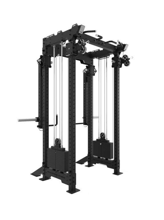 Das Athletic Rack Lever – Kabelzug von HOLD STRONG Fitness setzt neue Maßstäbe in Sachen Vielseitigkeit und Kontrolle. Es kombiniert ein Power Rack für Langhantelübungen, eine doppelseitige Kabelzugstation und bewegliche Lever Arms, die völlig neue Trainingsreize setzen. Diese Konstruktion ermöglicht geführte und freie Bewegungen in einem einzigen Gerät. Während das Power Rack für maximale Stabilität bei klassischen Übungen wie Kniebeugen und Bankdrücken sorgt, bietet die Kabelzugstation ein sanftes, gelenkschonendes Widerstandstraining. Die Lever Arms, auch als „Jammer Arms“ bekannt, erweitern das Training um eine Vielzahl von Bewegungsmustern, die in der traditionellen Langhantelarbeit nicht möglich sind. Damit eignet sich das Rack perfekt für Athleten, Kraftsportler und Performance-Training in PT´s oder Vereinen.