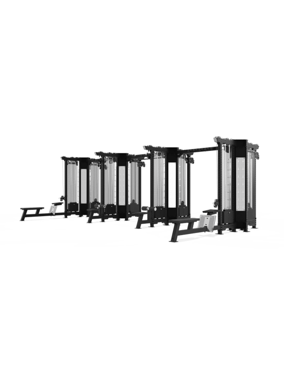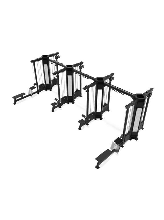 Das Custom Cable Rig wurde entwickelt, um höchste Ansprüche an Flexibilität und Individualität zu erfüllen. Sie haben die Möglichkeit, das System nach Ihren individuellen Anforderungen zu erweitern oder zu kürzen. Die freie Wahl der Kabelzugstationen ermöglicht eine maßgeschneiderte Fitnesslösung für jede Einrichtung, sei es ein professionelles Fitnessstudio, ein Firmenfitnessraum oder ein Sportverein. Die Beispielkonstruktion umfasst zwei Latzugstationen, zwei Ruderstationen und vier höhenverstellbare Kabelzüge am Turm. Die integrierten Klimmzugstangen bieten zusätzliche Optionen für ein umfassendes Training. Sie können die Anordnung und Art der Klimmzugstangen nach Ihren Präferenzen anpassen. Um sicherzustellen, dass das Kabelzugstation-Rig perfekt zu Ihrem Fitnessraum oder Studio passt, bieten wir die Möglichkeit, das gesamte modulare System in Ihrer Wunschfarbe zu bestellen. Für zusätzlichen Komfort haben wir ein Storage System für verschiedene Kabelzuggriffe direkt in den Kabelzugturm integriert.