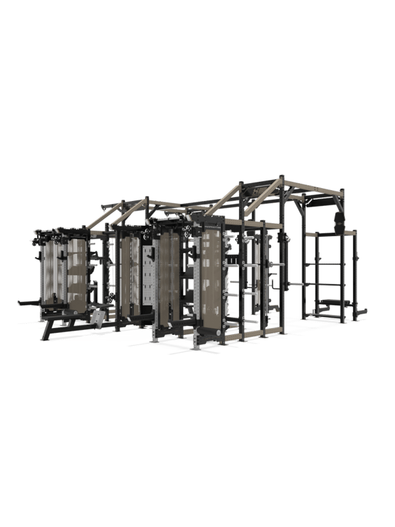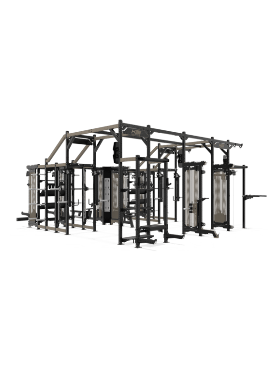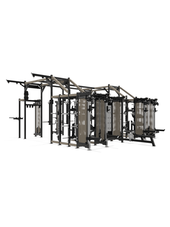 | Stationen | Das Performance RIG I bietet mit seiner Grundfläche von 60 qm, die beliebig erweiterbar ist, ein unvergleichliches Trainingserlebnis. Die intelligente Kombination aus Kabelzugstationen, Power Racks, Multipressen, Lever Arms, Squat Station (Plate Loaded), Dual-Kabelzug, Hip Thrust Station, Kletterseilen und Gym Rings ermöglicht ein breites Spektrum an Trainingsmethoden. |