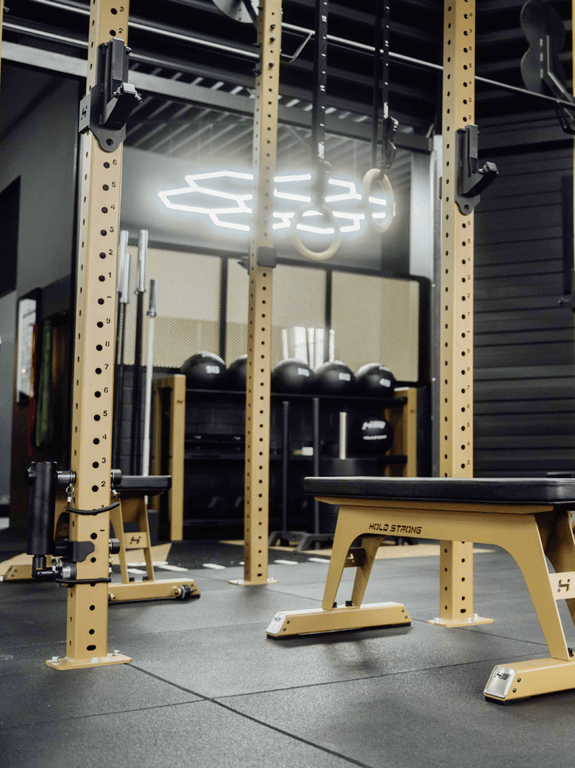 Neben den J-Cups umfasst das HOLD STRONG Fitness Rig-Zubehör eine Vielzahl weiterer Komponenten, die das Training noch vielseitiger gestalten. Safety Spotter sorgen für zusätzliche Sicherheit bei intensiven Workouts, während Kabel-Lösungen und Lever Arms das Rig in eine multifunktionale Trainingsstation verwandeln. Ergänzt durch Klimmzugstangen, Wall Ball Targets und Aufbewahrungslösungen für Hanteln und Kettlebells, lässt sich jede Trainingsfläche individuell anpassen. Mit diesen hochwertigen Ergänzungen wird das HOLD STRONG Rig-System zur idealen Plattform für funktionelles und leistungsorientiertes Training.