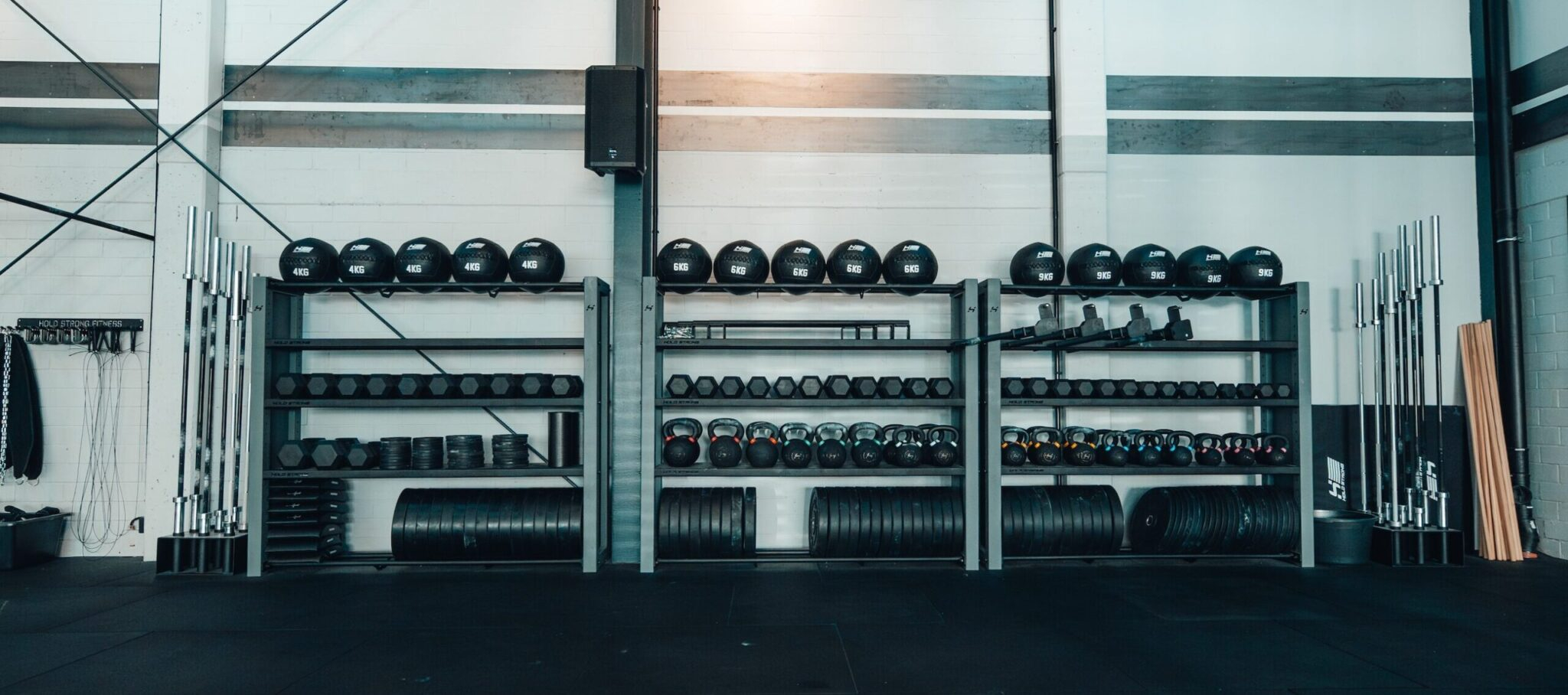Der komplette Trainingsboden wurde mit robusten Fallschutzplatten ausgelegt und nahtlos mit dem Turf-Bereich kombiniert. Hochwertige Storage-Regale von HOLD STRONG sorgen für Ordnung und schnellen Zugriff auf das umfangreiche Kleingeräte-Setup, darunter Kettlebells, Dumbbells, Wall Balls, Springseile und Mobility-Tools.
